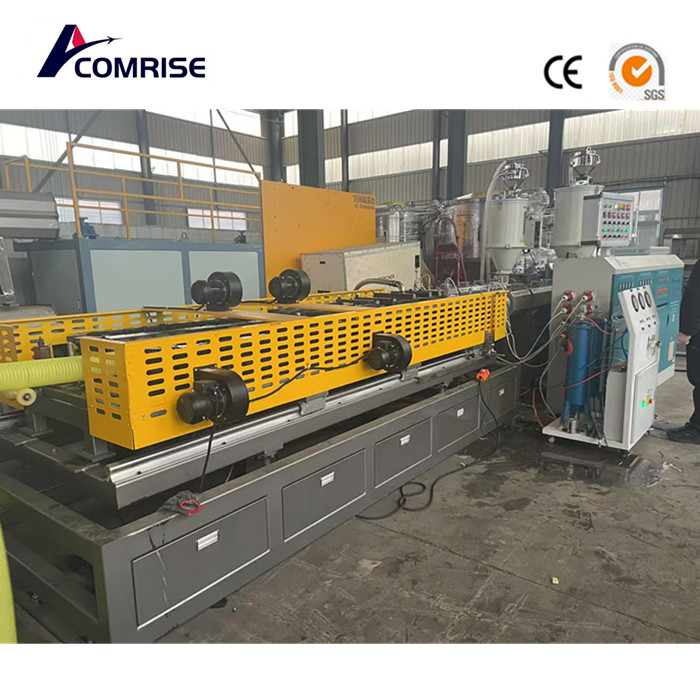 அதிவேக மற்றும் அதிக மகசூல் ஒற்றை திருகு எக்ஸ்ட்ரூடர்கள் பெரிய அளவிலான நிலையான வெளியேற்றத்தை அடைய தொழில் ரீதியாக வடிவமைக்கப்பட்ட நெளி குழாய் வெளியேற்ற அச்சுகளுடன் பொருந்துகின்றன;