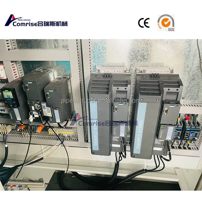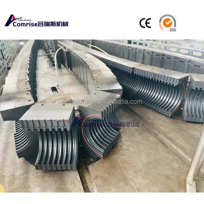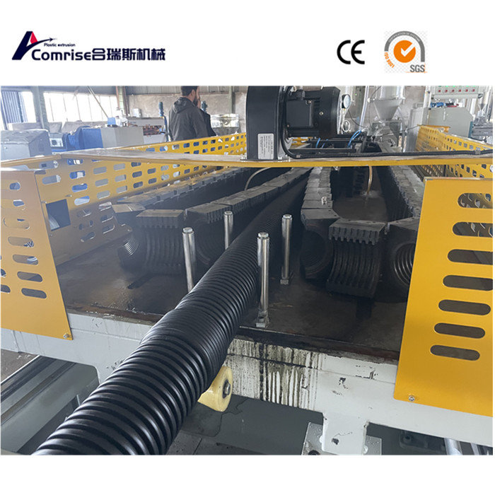 1. எக்ஸ்ட்ரூடர்: மூலப்பொருட்கள் (பொதுவாக எச்டிபிஇ, பி.வி.சி, அல்லது பிபி) உருகி தொடர்ச்சியான குழாயாக உருவாகும் முக்கிய கூறு.