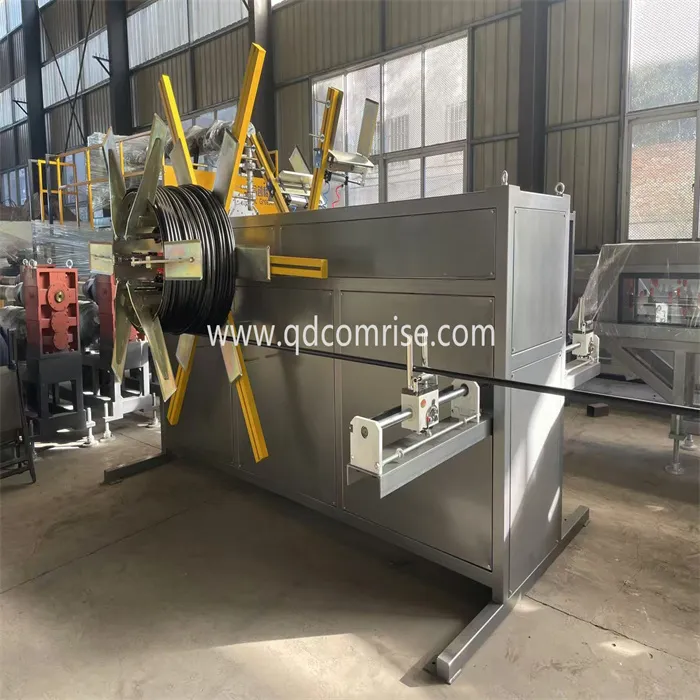 குழாய் உற்பத்தியின் முக்கிய கூறு இதுவாகும். HDPE மூலப்பொருள் சூடாகவும் மென்மையாகவும், பின்னர் ஒரு சிறப்பு திறப்பு மூலம் வெளியேற்றப்படுகிறது.