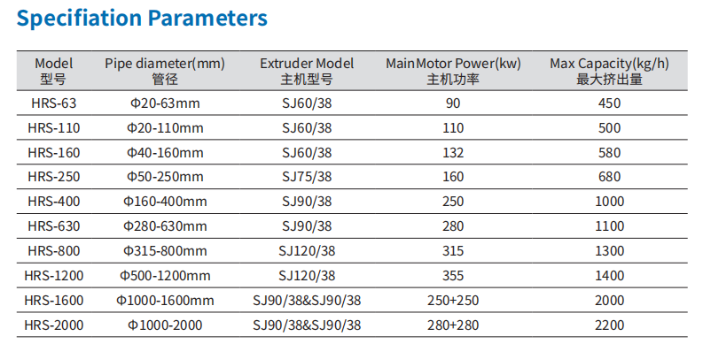 திறன்: ஒற்றை திருகு எக்ஸ்ட்ரூடர், அதிக திறன் கொண்ட PE பிசினை செயலாக்குவதற்கு ஏற்றது, அதிகபட்சம் 1000 கிலோ/மணிநேர திறன் கொண்டது. விட்டம்: 16 முதல் 800 மிமீ வரை. நியாயமான வடிவமைப்பைப் பின்பற்றுதல் மற்றும் பாதுகாப்பான உற்பத்தி தொழில்நுட்பத்தை உறிஞ்சுதல், இது CE மற்றும் ISO சான்றிதழ்களைப் பெற்றுள்ளது