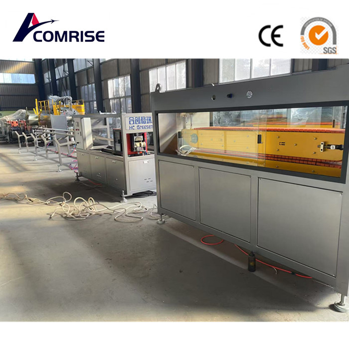 ஒற்றை திருகு எக்ஸ்ட்ரூடர் → வண்ண சரம் மற்றும் மல்டி-லேயர் கோ எக்ஸ்ட்ரூடர் → மோல்ட் → வெற்றிட அளவுத்திருத்த தொட்டி → தெளிப்பு குளிரூட்டும் நீர் தொட்டி → இழுத்தல் → தூசி நீக்கி இல்லை → ஸ்டேக்கர் → இறுதி தயாரிப்பு ஆய்வு மற்றும் பேக்கேஜிங்